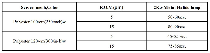 ¡¤Dry coated screen completely before exposure. Drying temperatures up to 40¡æ(104¨H).